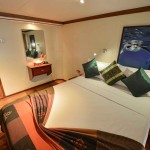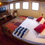 – 1 Cabine Deluxe con letto matrimoniale alla francese King size, al ponte superiore con grosse finestre , Tv Lcd, cassetta di sicurezza, bagno con doccia , aria condizionata