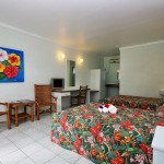 Le sue 16 camere sono tutte al piano terra per un facile accesso, disposte su un ettaro di terra con fronte ad est verso l’Oceano Pacifico; sono tutte climatizzate e dispongono di servizio giornaliero di pulizia, acqua calda solare, TV via cavo, frigorifero, bollitore per tè e caffè, wi-fi, telefono con linea diretta e due letti matrimoniali.